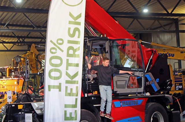 100 procent elektrisk: Manitou-teleskoplæsseren MRT2660 E Vision med rotation hele vejen rundt. Den batteridrevne maskine med løftehøjde på 26 meter vakte stor interesse (Foto: Scantruck A/S)