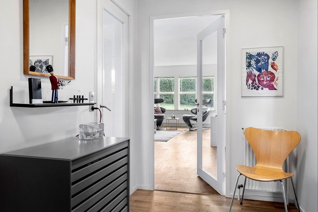 Hovvejen 4 er en præsentabel villa på 274 m², der ligger i et af Skives mest eftertragtede områder. Med sin velovervejede indretning, store opholdsstue og adgang til naturskønne omgivelser ved Krabbesholm Skov, er denne villa et oplagt valg for familier, der søger et roligt men centralt beliggende hjem. Prisen er 4.495.000 kr. Du kan se mere om boligen her.