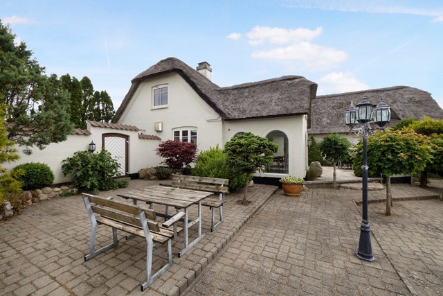 Den imponerende, stråtækte bolig strækker sig over 257 bolig kvm. og ligger på en vidunderlig grund på hele 1,9 hektar. Her er plads til heste, vinmark eller anden hobby.