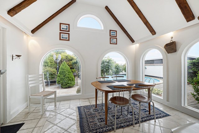 I kan også glæde jer over en hyggelig udestue med loft-til-kip, der er fyldt med naturligt lys takket være de store vinduer. En opvarmet gildesal står også til jeres rådighed, sammen med de to dejlige værelser, badeværelset og entréen.