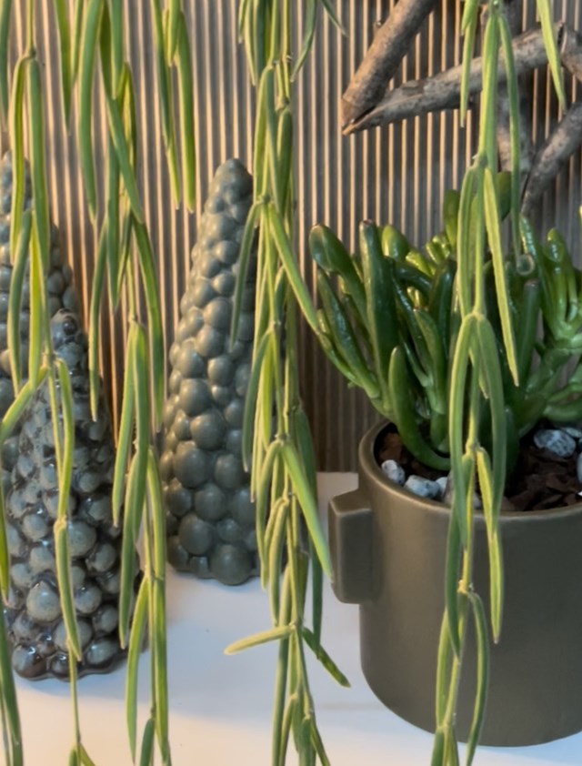 “Vi har et bredt udvalg af julepotter og brugskunst til julen 2022. I år har vi mange forskellige farver, og vi går meget op i genbrugsmaterialer og naturmaterialer, som folk er vilde med,” fortæller blomsterdekoratøren.