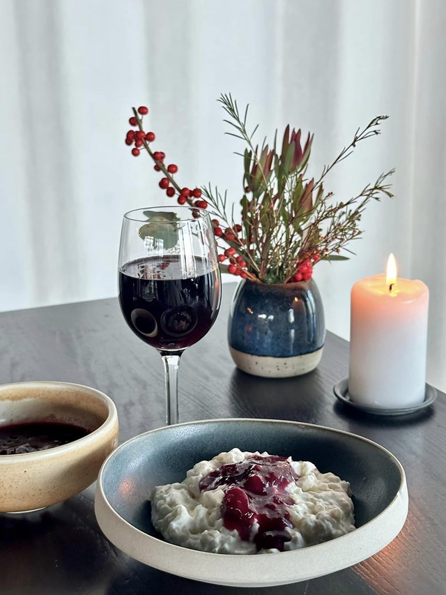 DESSERT: Klassisk risalamande med brændte mandler samt kirsebærsauce
