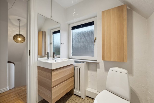 I kælderen finder du et praktisk vaskerum, husets tredje toilet og flere disponible rum, der kan anvendes til en række formål. En høj sokkel sørger for godt lysindfald, og der er desuden egen indgang.