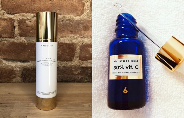 Produkterne Alba Pearl Skin Whitening og 4x Stabilized C-vitamin 30% Serum (Foto: Beauty by Birkø)