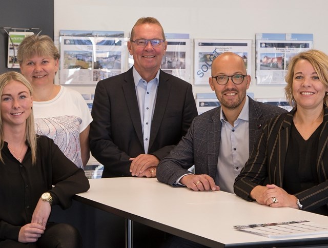 Foto: EDC Skive // Jeanette Bak Madsen, Karin Bodilsen, Poul Erik Handberg, Asbjørn Møller Nielsen og Annette Nygaard Espersen står klar til hjælpe dig med dine boligdrømme