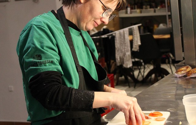 Tove er sig også sit sociale ansvar som arbejdsgiver bevidst. Hun har tre ansat i flexjob og en i skånejob, hvoraf den ene i flexjob selvstændigt driver kantinen på Social- og Sundhedsskolen i Skive, som Frokostbussen bestyrer.