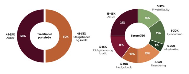 Secure 360 er et rigtig godt eksempel på hele spektret af investeringer, som Secure Spectrum tilbyder. Secure 360 er en unik mulighed, som giver adgang til en diversificeret portefølje dækkende over både likvide aktiver som traditionelle børsnoterede aktier og obligationer, men også alternative investeringer såsom private equity, private debt, ejendomme, infrastruktur og hedgefonde.