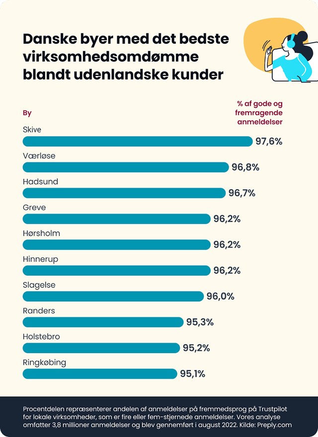 Hvilke danske byer har det bedste virksomhedsomdømme blandt kunder, der taler andre sprog end dansk?