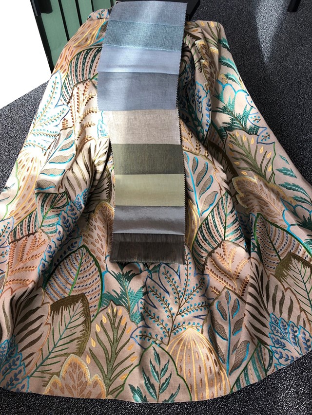 “Der har været stor efterspørgsel på stof gardiner der kombineres i matchende farver med enten rullegardiner/plissegardiner eller puder."